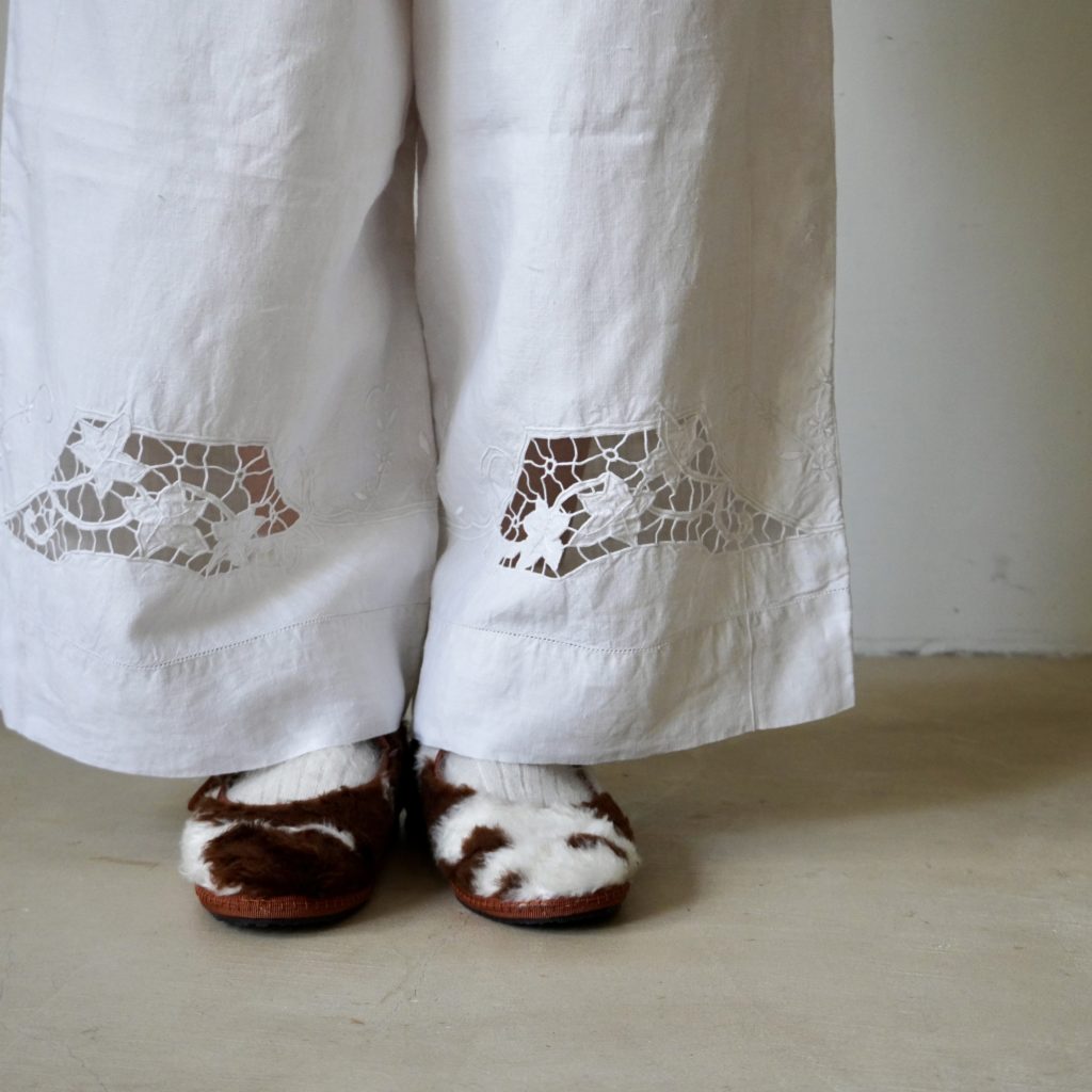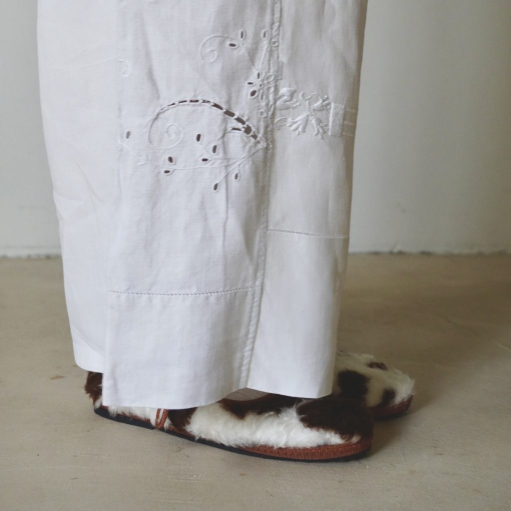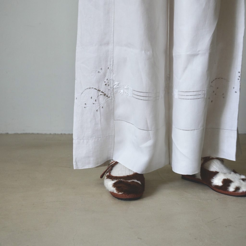 ound/repurposed-TROUSERS – oundのrepurposedラインは、アンティークのベッドリネンを使用 「古いもの」として処分されるものを再び使えるものとして、新たな価値を与えるコレクシヨンです 全て一点物のため生地や刺繍は異なります 今季も素敵な刺繍のパンツが入荷しています ぜひ店頭、オンラインショップにてご覧ください☺︎ @_ound_HAND DYED REPURPOSED BED LINEN – TROUSERS – 11.14.2025 STORIES < PREV NEXT >